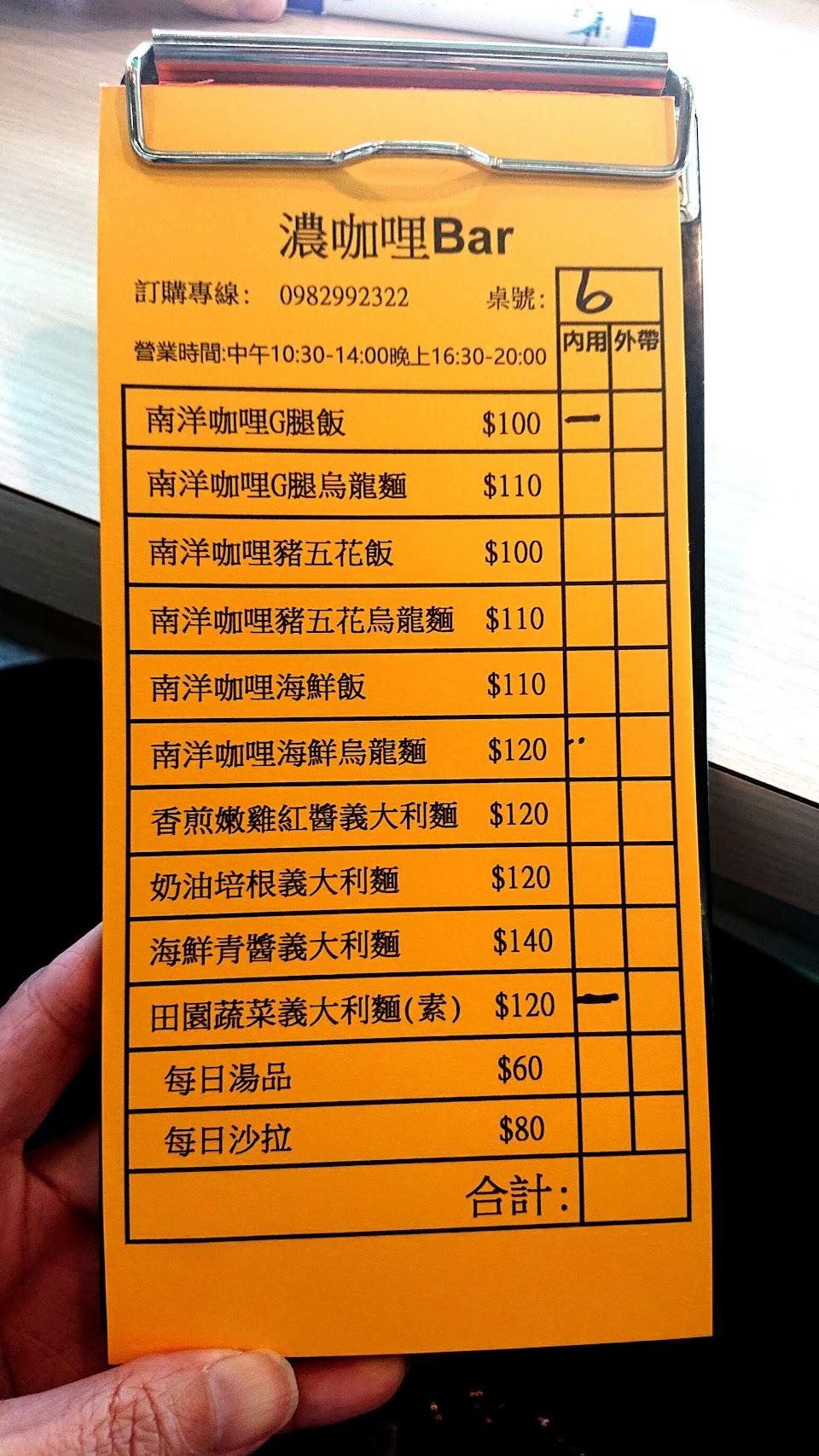 好吃 從100塊吃到現在140。內外用菜單不一樣,內用強迫點套餐+一個海鮮濃湯。旁晚6點多就賣完了,每個月營業時間也不一定。所以建議是打電話外帶免得白跑一趟