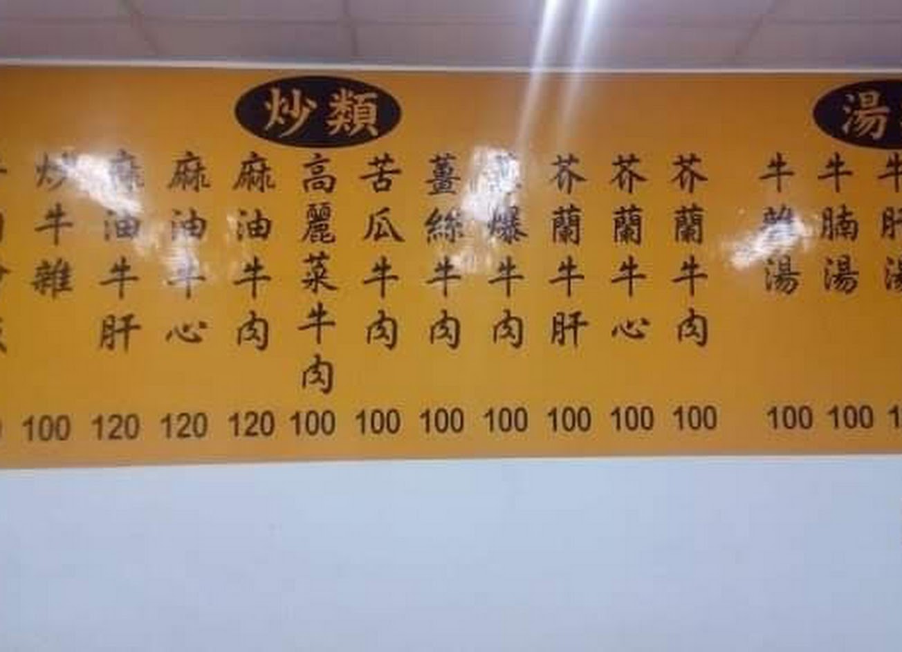 沒有寫菜單要直接到外場喊餐 魯肉飯是自助的 肉偏肥 牛肉湯頭清甜 高麗菜炒牛肉份量挺少的