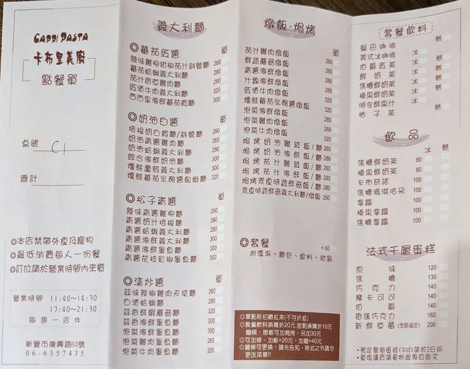 2024最新在地推薦餐廳的菜單_卡布里義廚的菜單、圖片