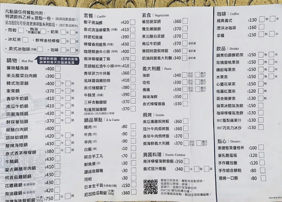 甜點, 時蔬松阪豬, 焗烤紅酒牛肉燉飯, 牛腩煲