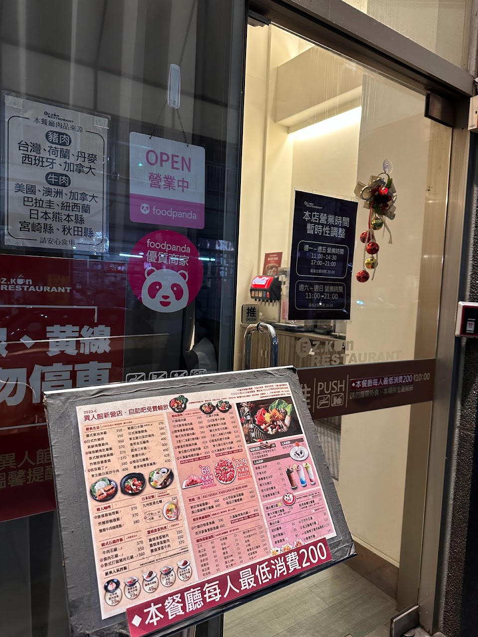 | 星期三 | 11:00–14:30 17:00–21:00 |