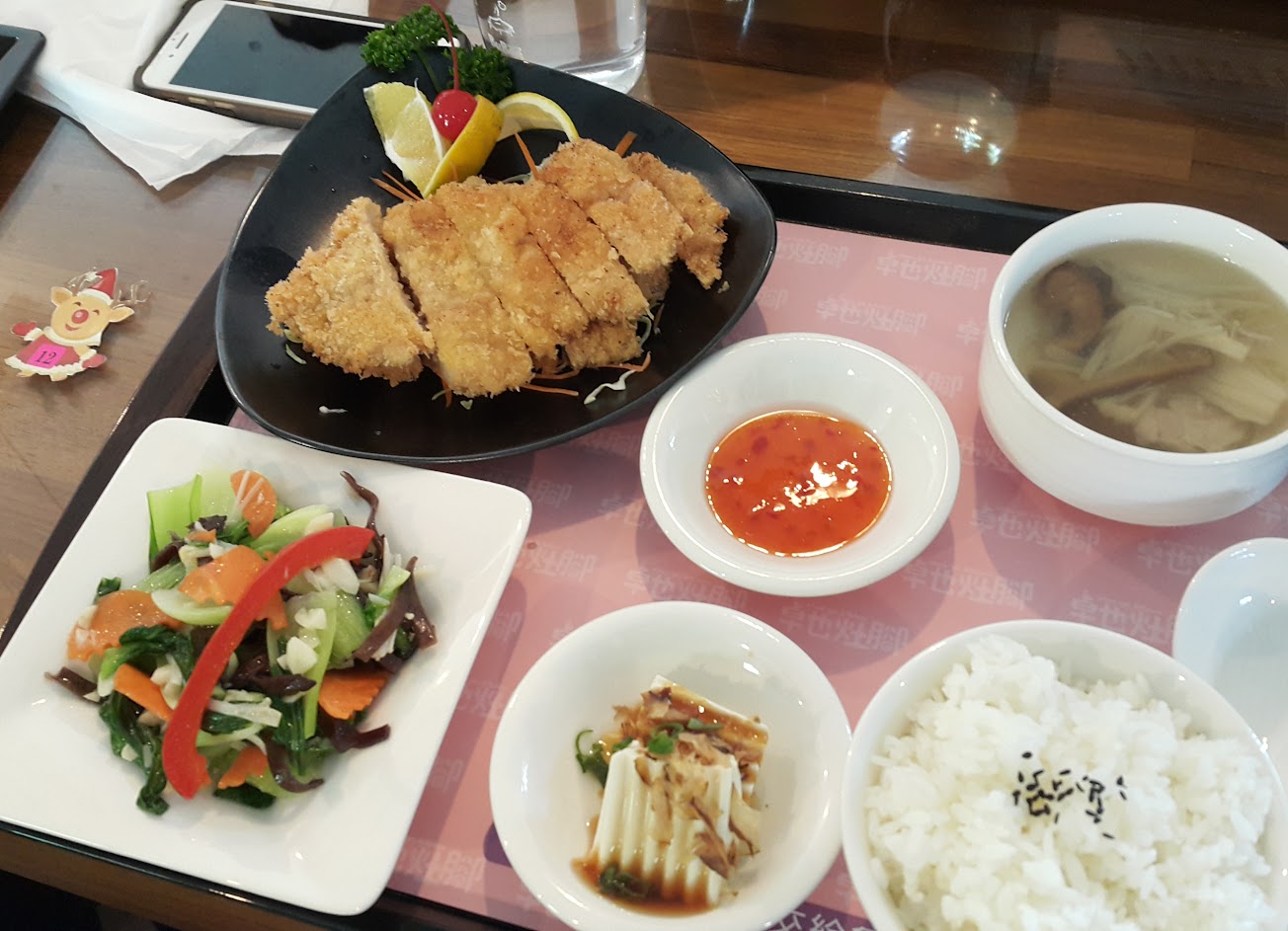 麻油雞火鍋好吃,但黃金炸豬排套餐份量太寒酸,一碗飯、一塊豬排、一樣配菜、半顆蛋、一碗裡面只有一顆丸子的湯,要價220元,很不值!