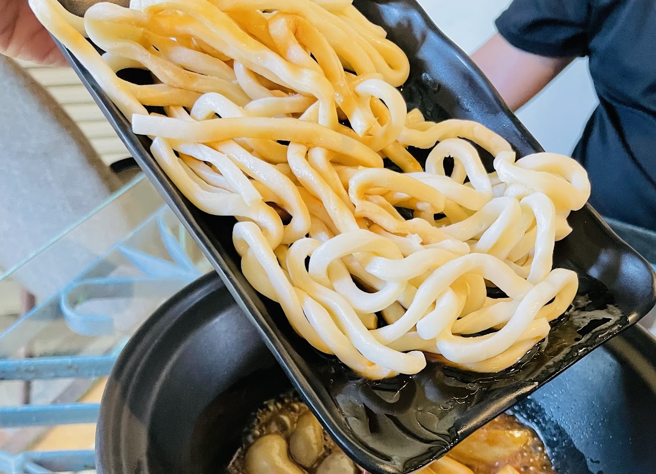 創意的火鍋兩吃,體驗自己炒的烏龍麵條