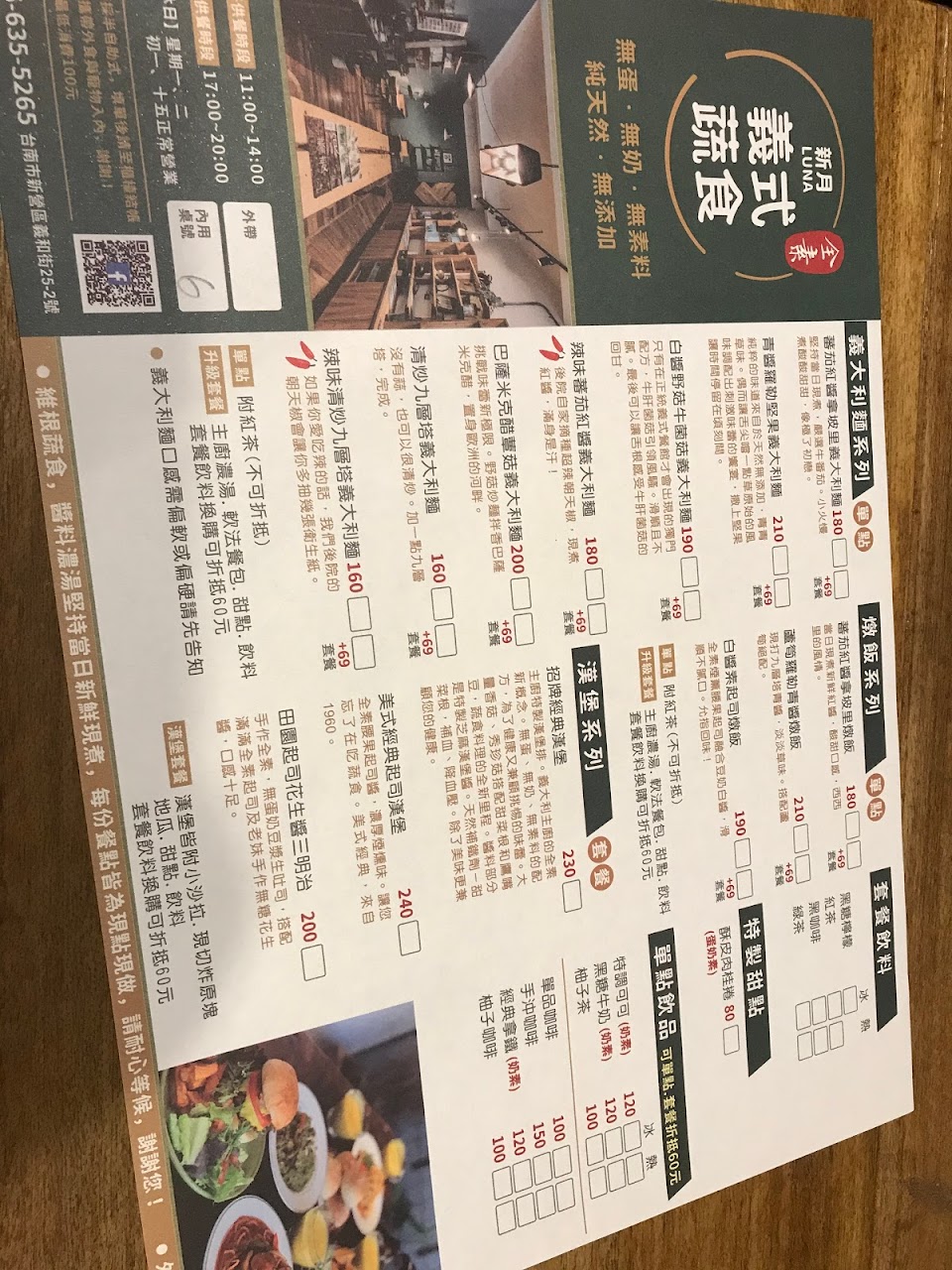 2024最新在地推薦餐廳的菜單_新月義式蔬食的菜單、圖片
