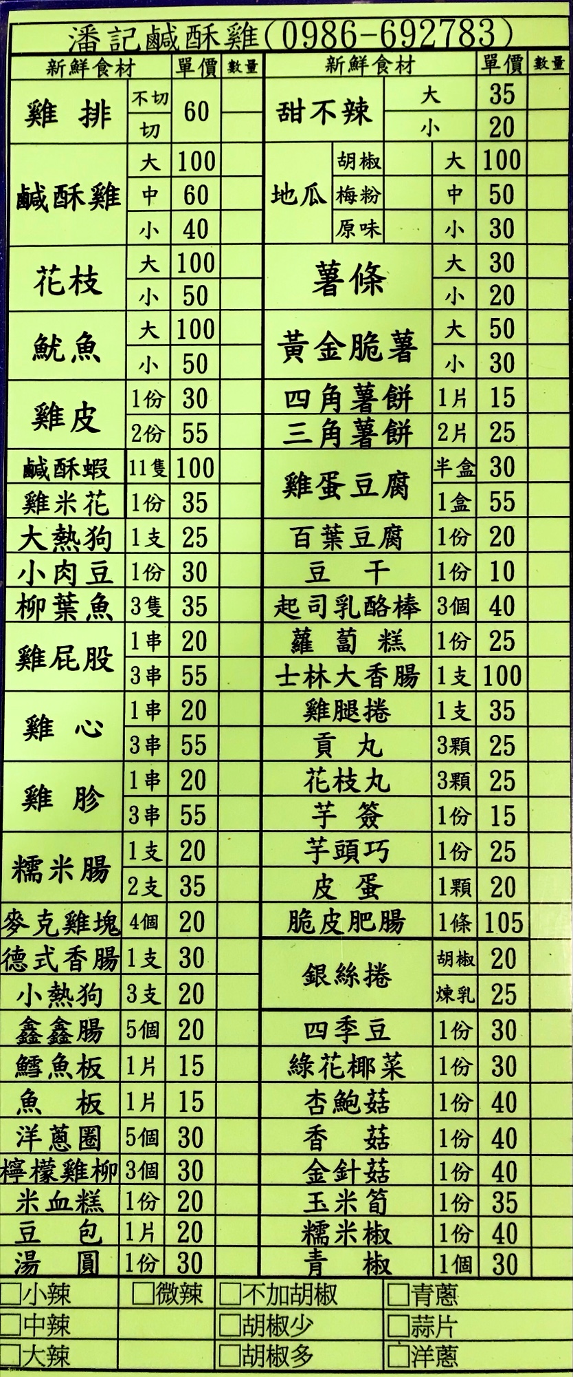 2024最新在地推薦餐廳的菜單_潘記鹽酥雞的菜單、圖片