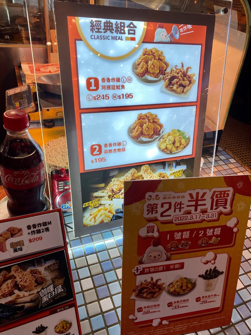 買了一號餐(中份香香雞跟魷魚)