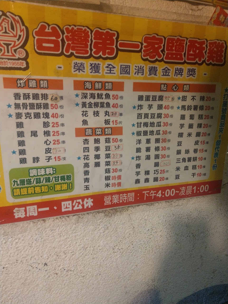 2024最新在地推薦餐廳的菜單_台灣第一家鹽酥雞的菜單、圖片