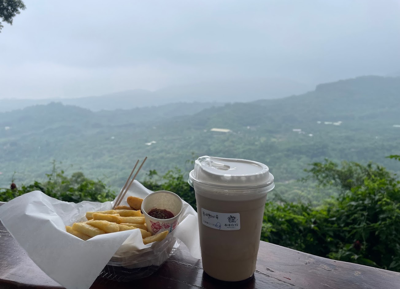 沿著蜿蜒的山路往東山咖啡公路的方向前進,檳榔、果樹是沿途的主角。農場入園收費ㄧ人200元,可抵消費100元,但農場內目前只提供輕食和飲料,選項蠻少的。園區除了輕食區略為營造、整理外,其餘步道原始,少人使用,感覺曾經熱鬧過後,呈現荒廢。幸好,眺望對面山陵,偶有山風徐來,偶拾山中片刻的寧幽。