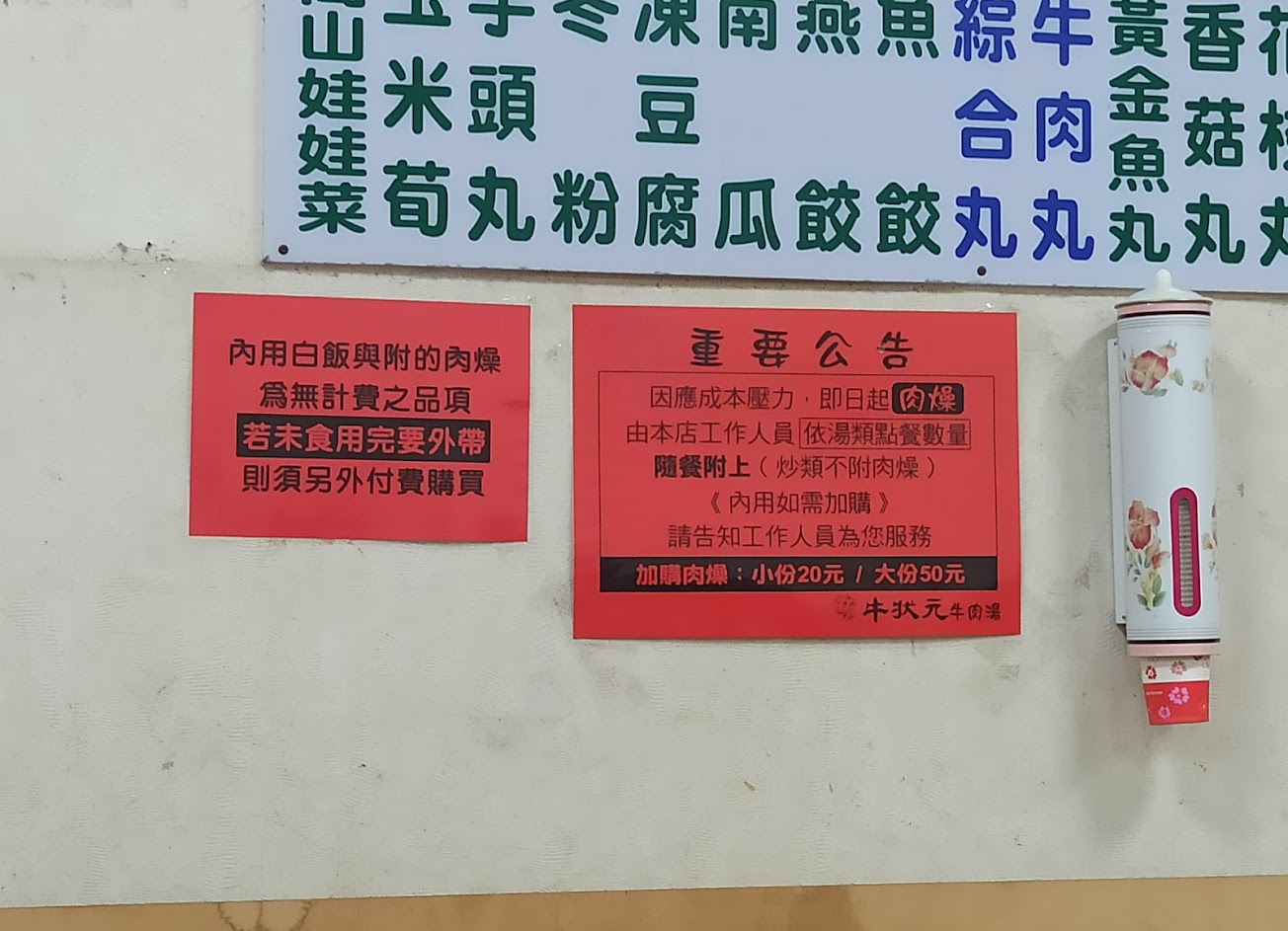 肉燥改配給的,點三碗牛肉湯只附贈一小碗7分滿肉燥,三個人吃一碗飯都不夠加,之前跟朋友去吃時差太多了,太失望了!不會在懷念了!