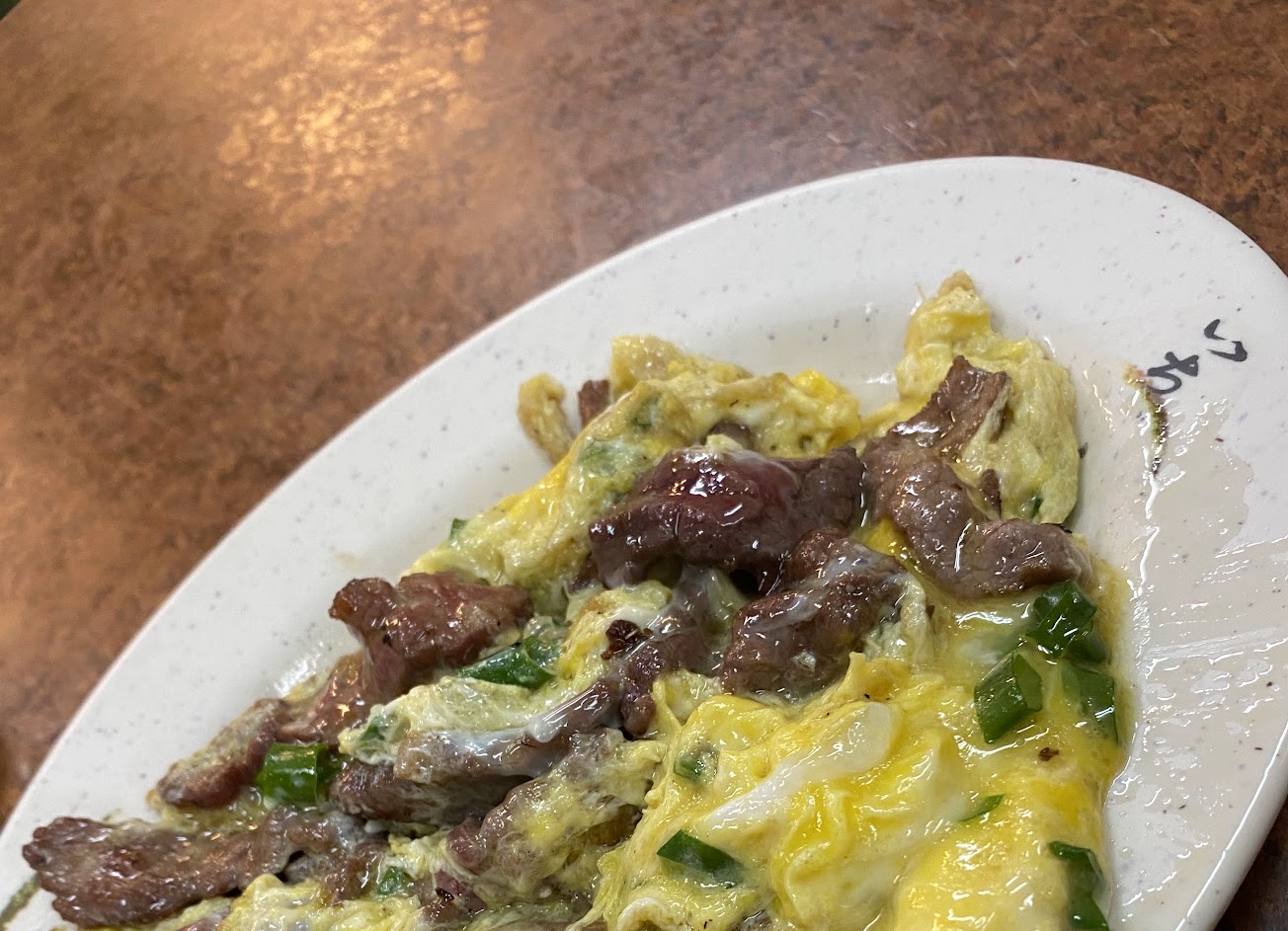 牛肉湯湯頭鮮甜牛肉嫩,滑蛋牛肉跟高麗菜炒牛肉,就是一般熱炒店的口味。疫情期間內用不賣牛肉鍋(避免共鍋),只能單點牛肉湯。