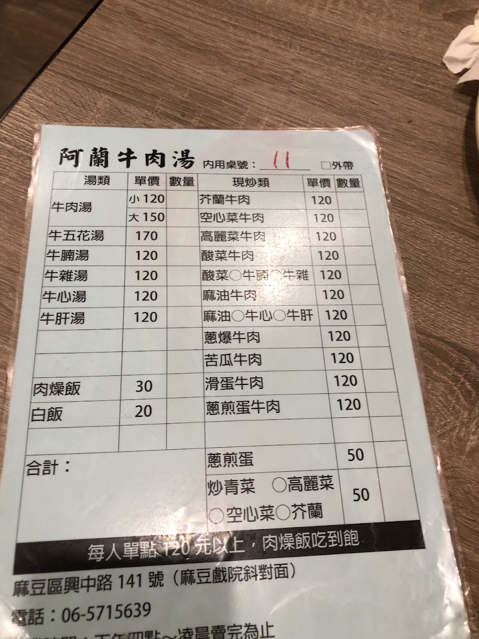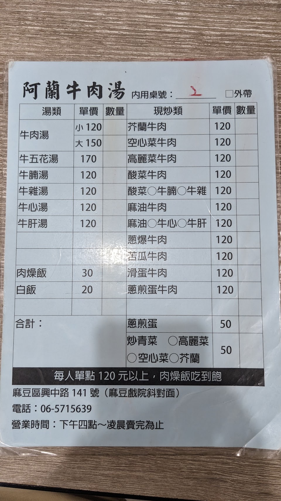 2024最新在地推薦餐廳的菜單_阿蘭牛肉湯的菜單、圖片