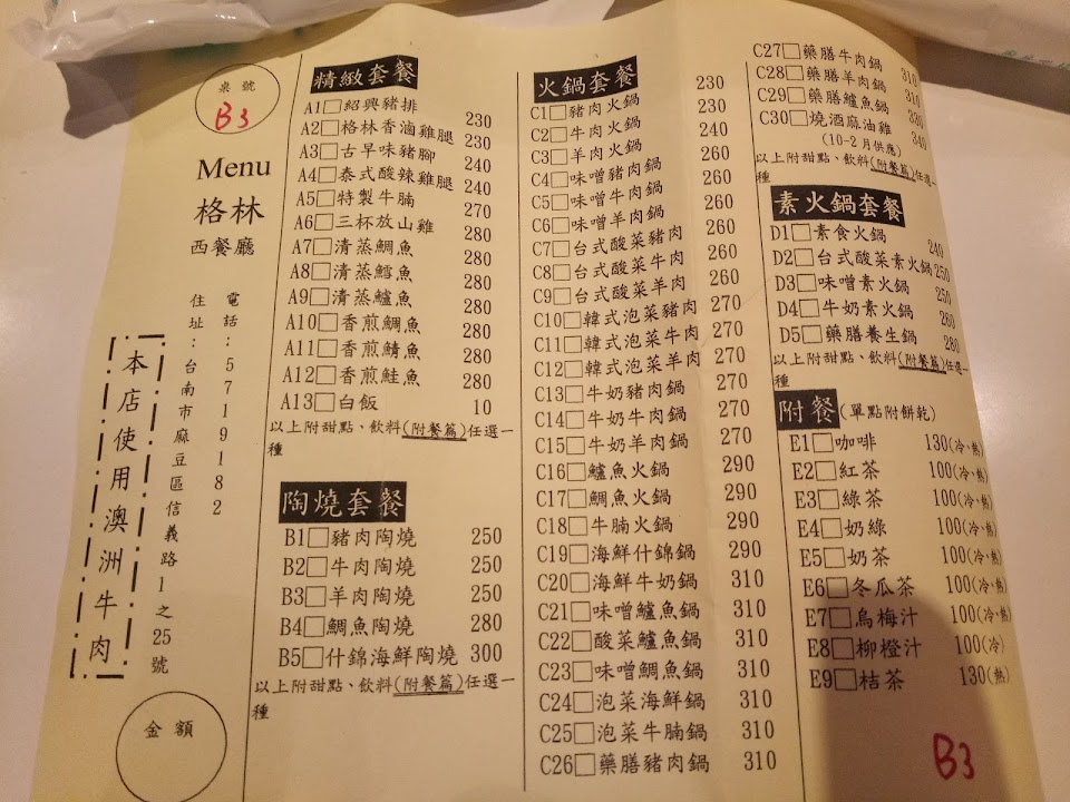 2024最新在地推薦餐廳的菜單_格林餐廳的菜單、圖片