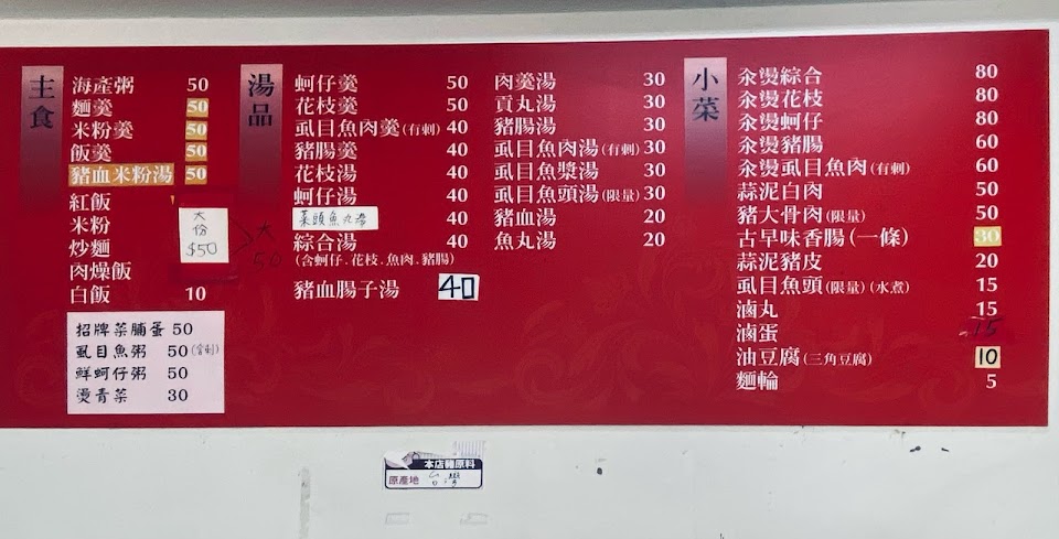 一開始看到紅飯很特別名稱,原來是蕃茄炒飯,賣的東西簡單,小菜、湯很傳統的路邊湯小吃,味道還可以。