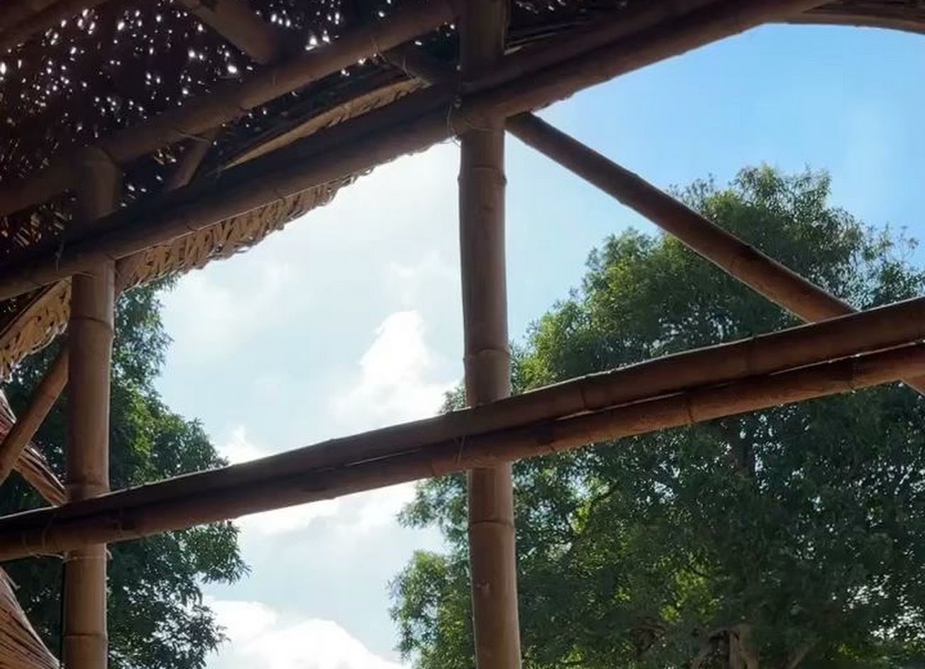 如今梅花鹿復育有成,西拉雅的文化、語言復振也有了不小的進展。看似微小的的成果,像是睜開眼睛的梅花鹿,祂逐漸醒來,以竹結構配合竹編技法,主體爲有機造型,身體內部為建築空間結合聲音藝術作品呈現,民眾可進入主體內部聆聽,創造自我與自然的對話。)