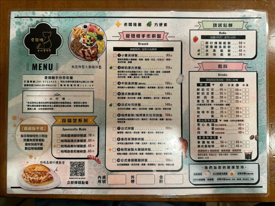 2024最新在地推薦餐廳的菜單_愛薇糖手作早午餐的菜單、圖片