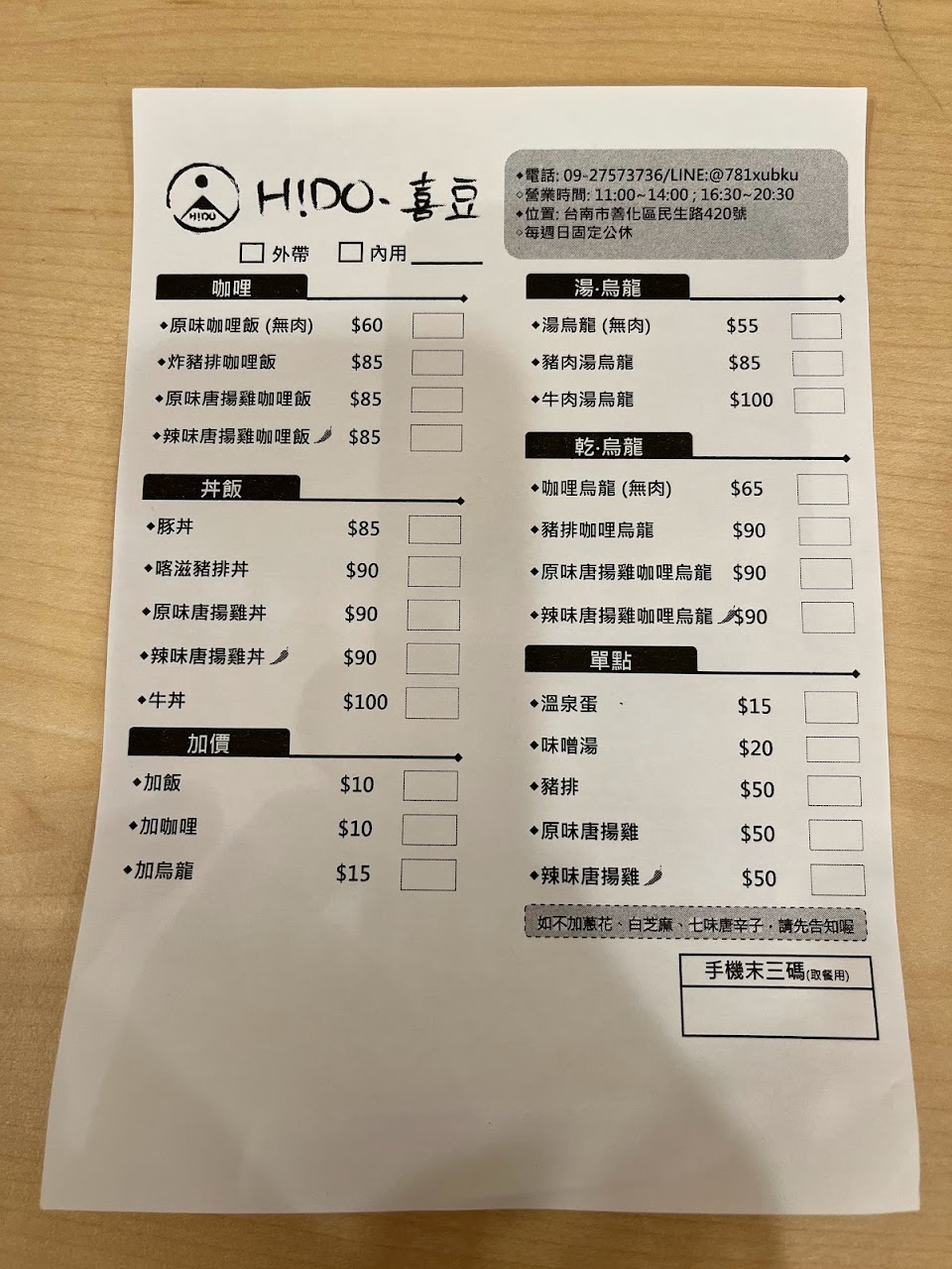 2024最新在地推薦餐廳的菜單_HiDO•喜豆 咖哩&丼飯&烏龍 (善化店)的菜單、圖片