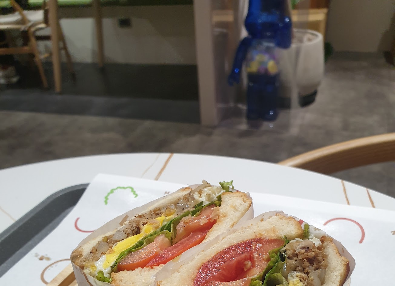 我選了《鮪魚炒洋蔥吐司含蛋》$150 有特別說不要加美乃滋 所以一口咬下配上新鮮的生菜和番茄 蠻清爽的! 鮪魚炒洋蔥吃起來是鹹甜鹹甜的味道 抹上奶油的吐司吃起來特別香 如果蛋可以不要那麼熟會更好? 製作的時間大概20分鐘以上 需要稍等一下