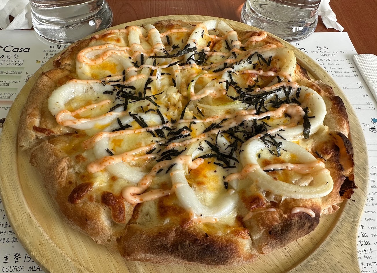 今日與朋友前來聚餐,點了明太子墨魚、老麵瑪格麗特、鮮蝦沙拉,三個人吃好滿足,而且是的大隻蝦子,東西食材乾淨、新鮮,環境也很適合聊天、休息!值得再來的一家店!