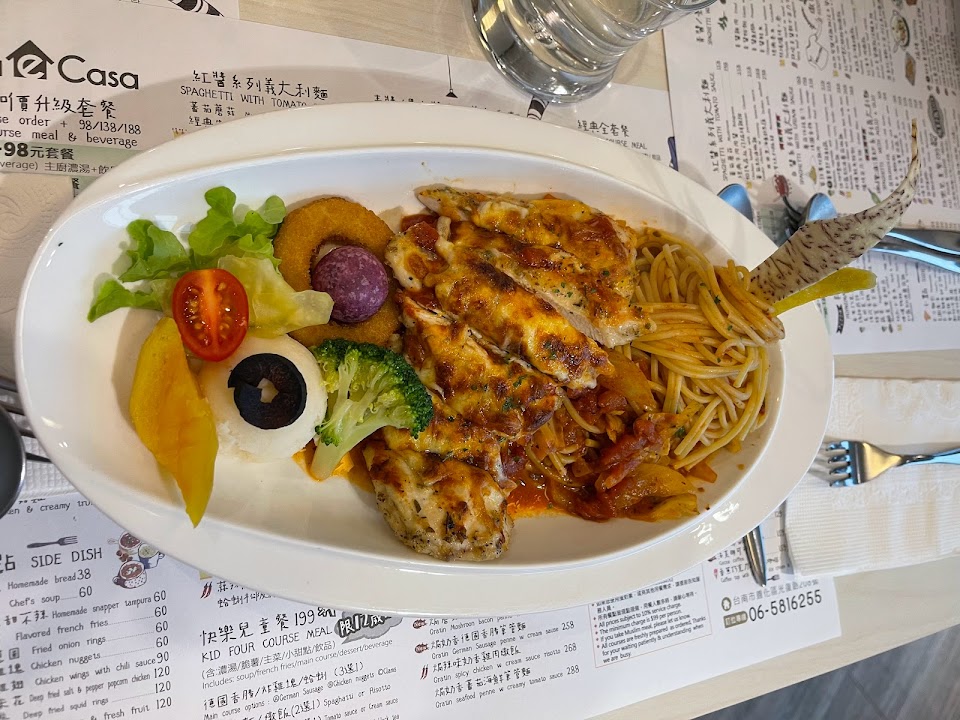 有提供兒童餐具。也有提供12歲以下的兒童餐。兒童餐有濃湯,義大利麵,薯條和雞塊,飲品,及飯後甜點。很超值。自己點德式香腸白醬義大利麵。