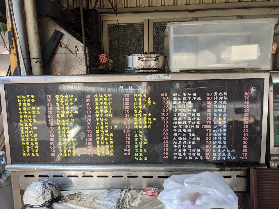 外觀非常驚人,感覺不衛生、髒亂。不是有人推薦應該很難路過進來消費。 店內環境昏暗,冰箱雜亂有點恐怖。 肉燥飯魯的軟爛但味道略清淡,搭上清脆的筍子非常不錯。 豬臉則是軟爛入味,非常推薦 蚵仔酥則表現略差,個頭雖夠但在口感上表現不優 丸子湯4個丸子 25 ,調味略重尚可接受 整體來說,菜色多樣價錢非常便宜,很適合一個人又想大吃大喝家常菜的店家