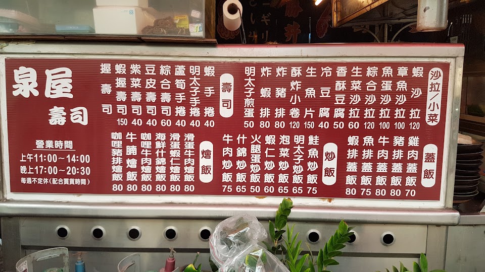 非常喜歡泉屋的醋飯做出來的壽司跟蝦手卷,很有古早味。炒飯也好好吃,老闆的炸物也很棒⋯⋯啊,下次ㄧ定要拍下來(:;)