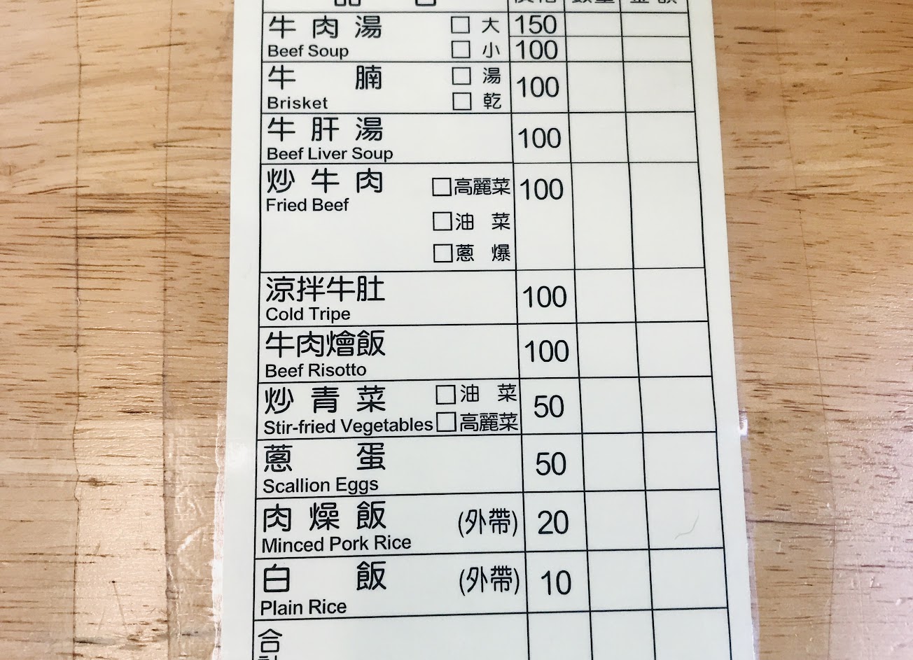 今天點了牛肉湯(小)$100+蔥蛋 $50✨