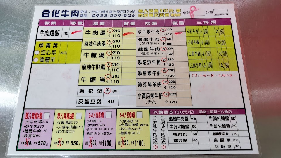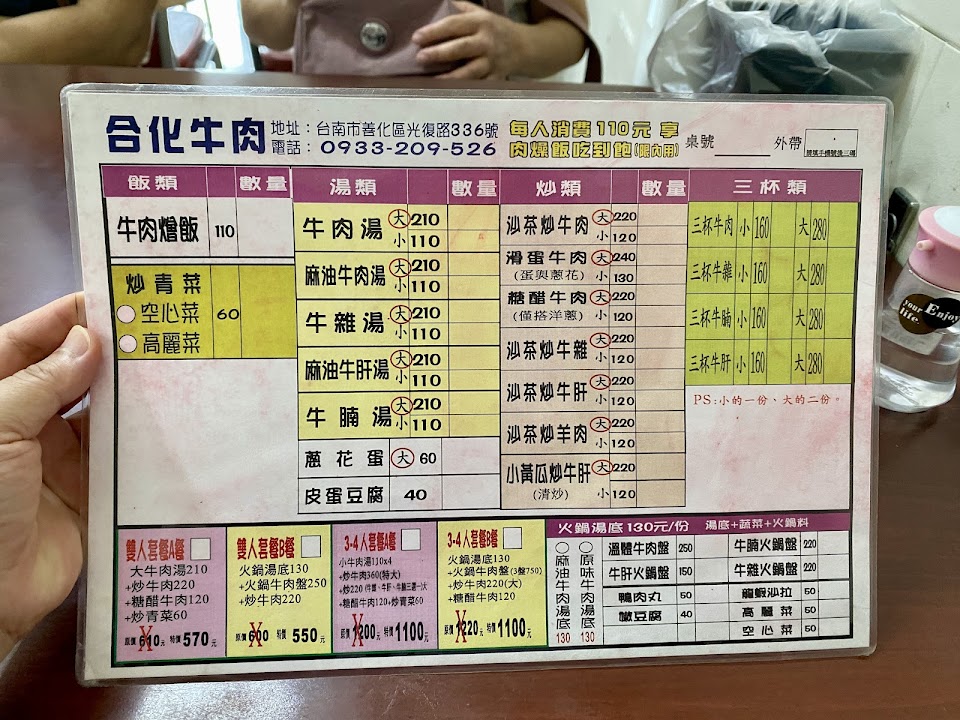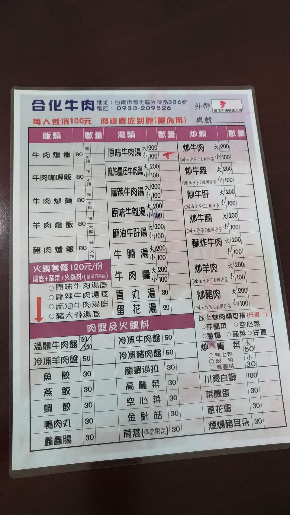 2024最新在地推薦餐廳的菜單_合化牛肉湯的菜單、圖片