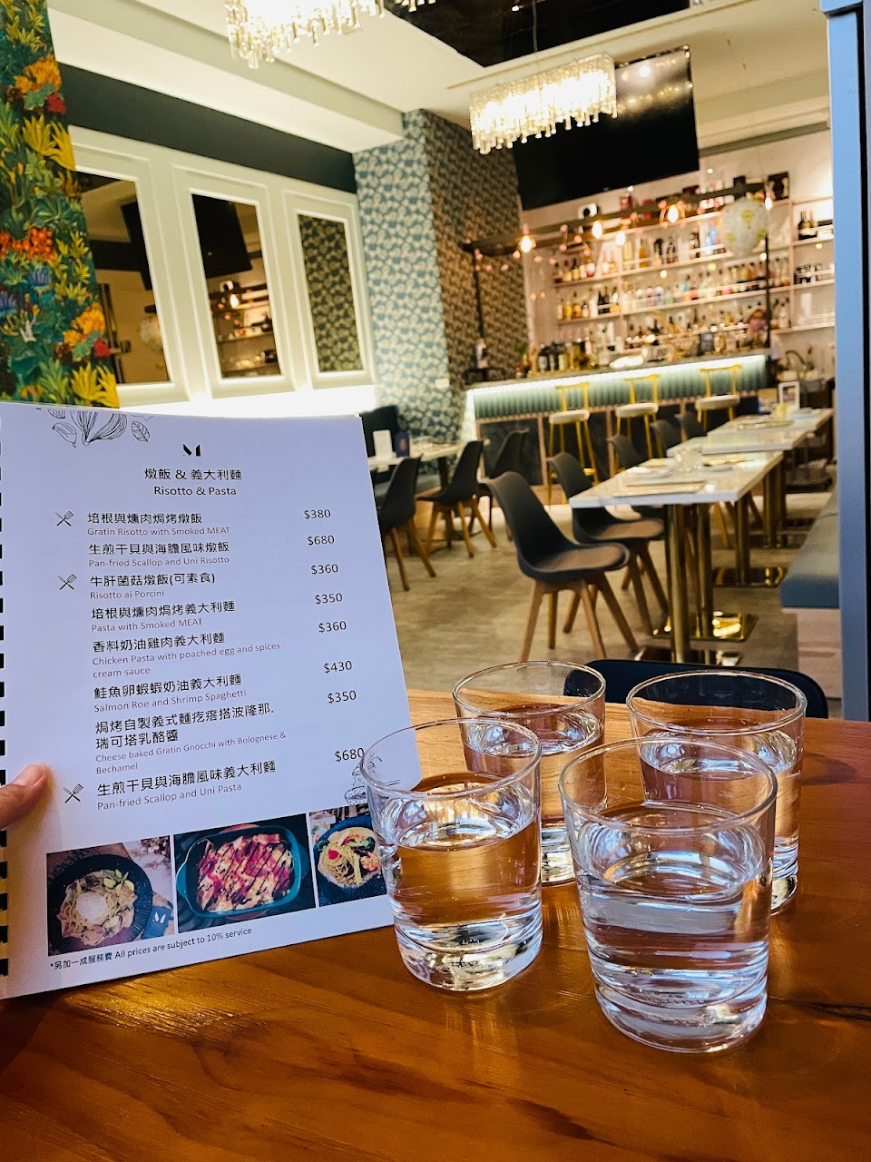 調酒會根據節日推出特調,這次跨年是溫啤酒?很特別,義大利麵好吃,餐點價格偏高,但鮭魚卵感覺不是真,布拉塔起司沙拉令人驚豔,青醬真材實料?法國麵包是酥脆的,搭配主廚濃湯剛好