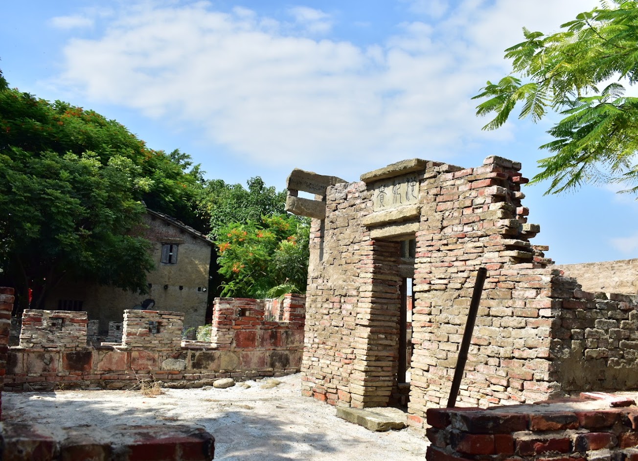 一進門映入眼簾就是非常老式的紅磚瓦牆、古井,還有賣魚飼料的小攤商,我記得三包五十元,但是一進門千萬先別買!因為走一小段你會看到4包五十,九包一百元,會更便宜,不用急著買,反正湖在後頭!