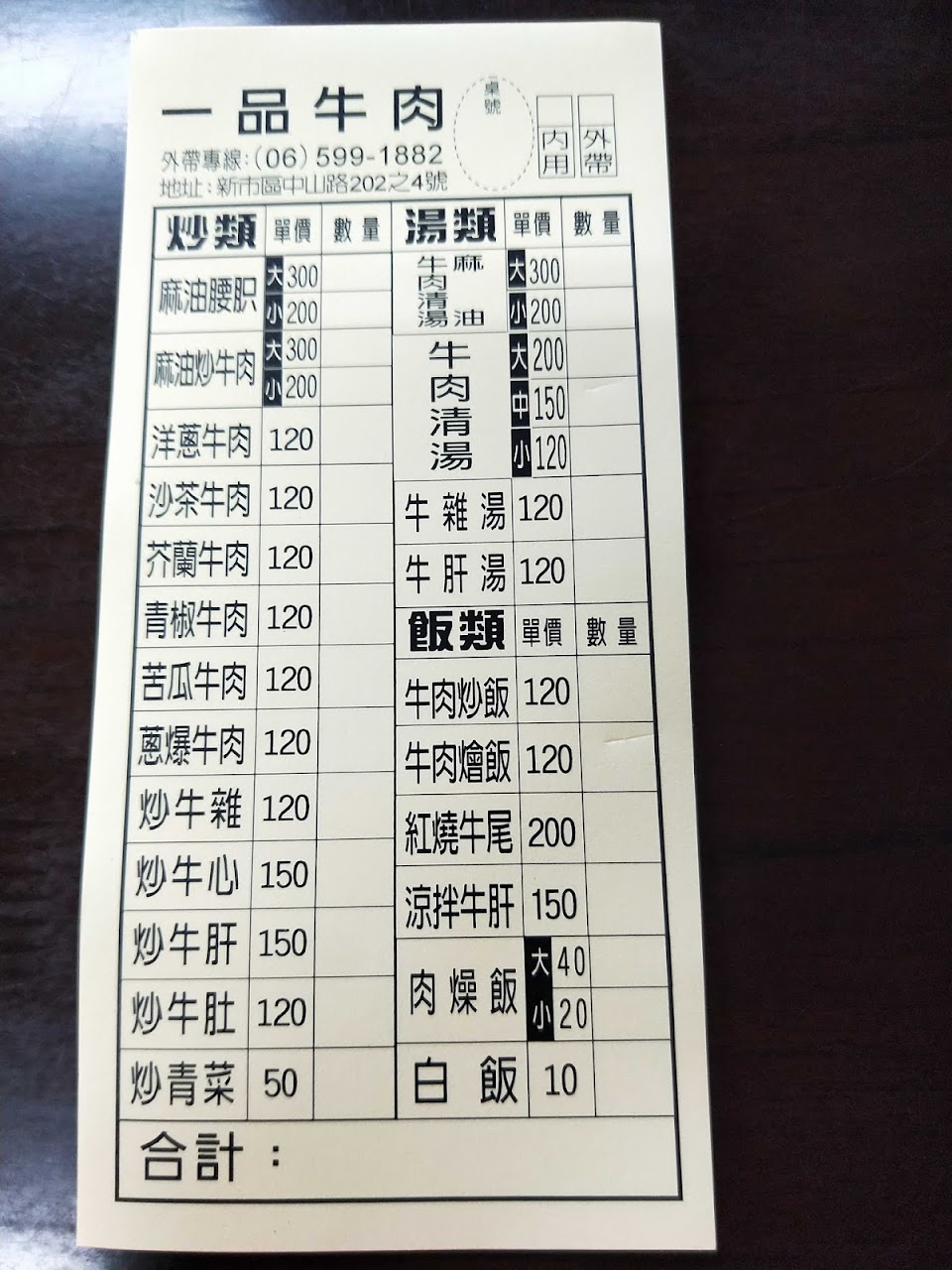 2024最新在地推薦餐廳的菜單_一品牛肉湯的菜單、圖片