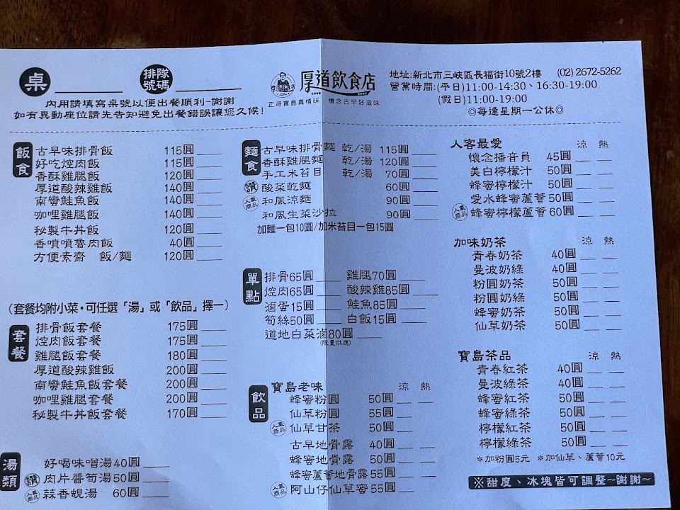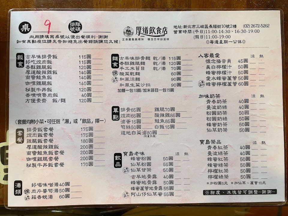 2024最新在地推薦餐廳的菜單_厚道飲食店 三峽店的菜單、圖片