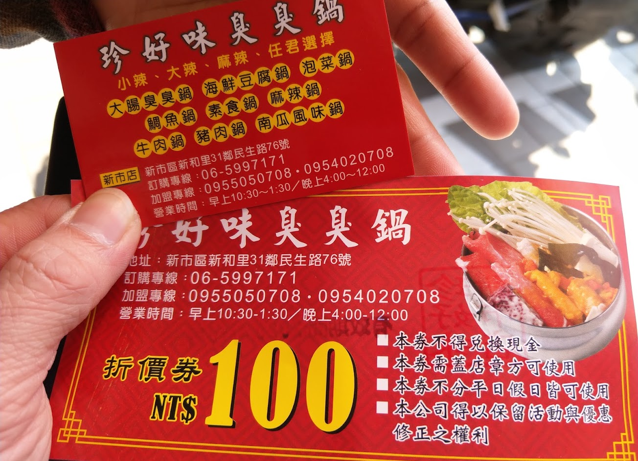 味道跟永康總店一樣,老闆說是100%從本店copy過來的,因為疫情關係,有時中午都還帶鐵鍋去裝回家吃,希望店可以興隆,吃臭臭鍋第一間一定是吃珍好味