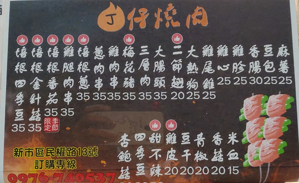 2024最新在地推薦餐廳的菜單_丁仔燒肉(碳烤串燒)的菜單、圖片