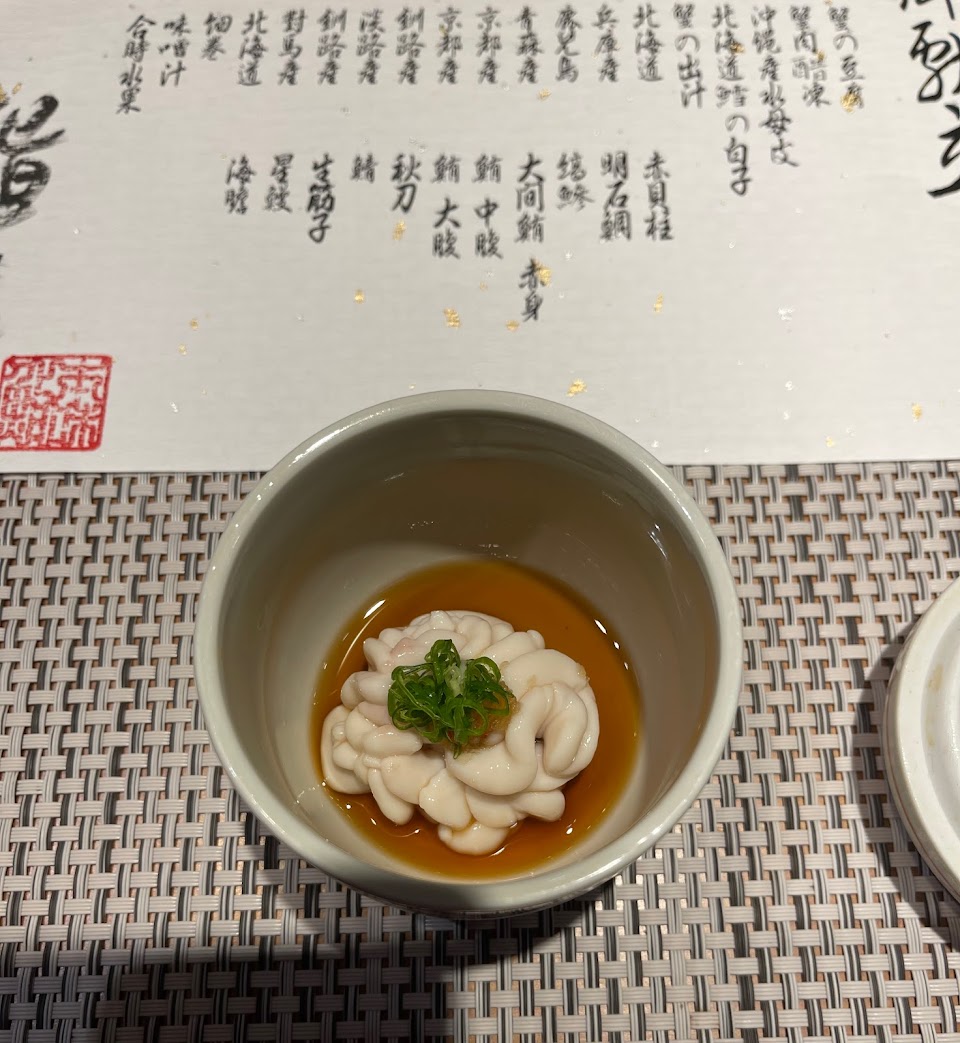 一個人2500元第三道就來蒸蛋,有點嚇到,內行人應該知道我想表達的是什麼,另有三樣都是用海苔包捲,感覺沒什麼特色,又海苔在胃裡會膨脹當晚有點不舒服,老公半夜吐了一大包海苔湯?