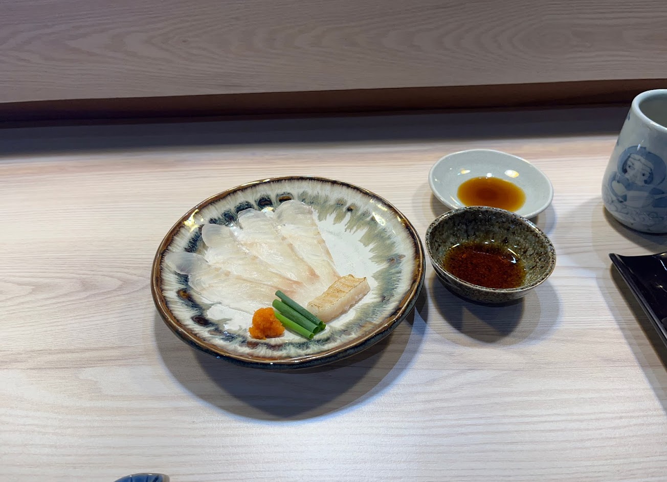 台南少見的鮨字輩板前日料,前三道生蠔、白子、皮剝肝,有星級水準,尤其是白子,一般我是不吃,但師父建議我一定要試試,果然真的是完全顛覆我先前不好的印象,真是太美味了。再來甜蝦、牡丹蝦一吃就像來到了日本,懷念啊!。但後面的就中規中矩了,最後的一道水果就真的是低於水平了,唉!。