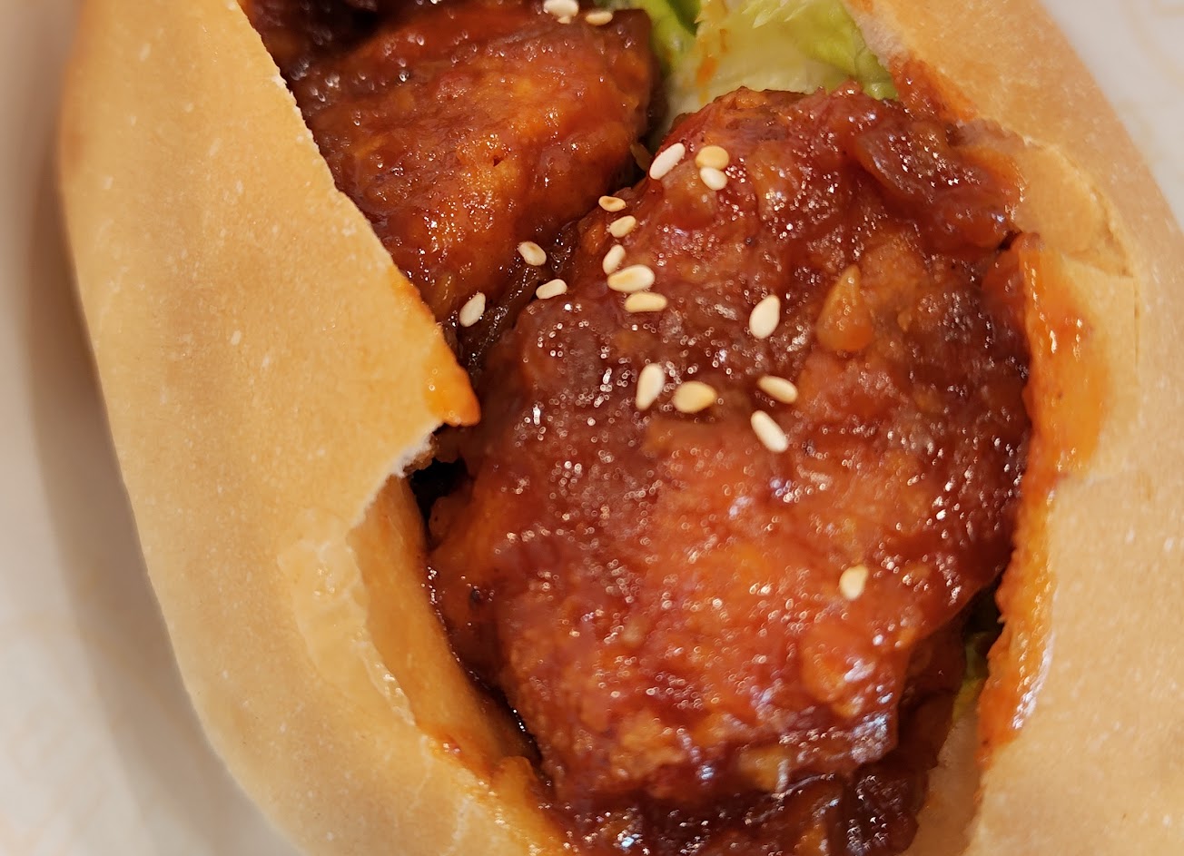 韓式炸雞潛艇堡,口味微辣,麵包口感鬆軟,配料豐富滿足,發現有小蘿蔔的時候有點驚喜,整體而言很好吃!