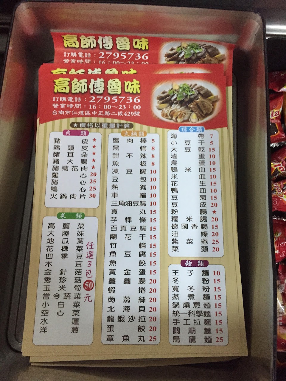 2024最新在地推薦餐廳的菜單_高師傅滷味的菜單、圖片