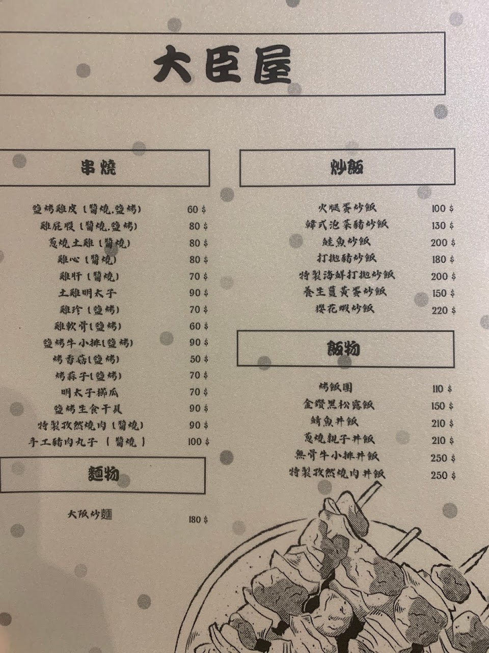 2024最新在地推薦餐廳的菜單_大臣屋 -日式燒鳥的菜單、圖片
