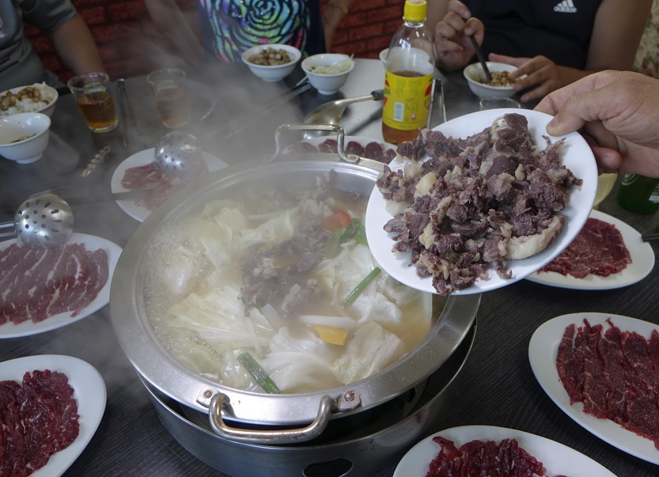 老闆堅持使用當日現宰的溫體牛肉,牛大骨及新鮮蔬果熬的湯更是別有一番鮮味!各式現炒牛肉,苦瓜、芥蘭、蔥爆等等都是好滋味。溫體牛肉各個部位都有不同的口感,跟各位分享一下我自己喜歡的吃法,就是夾一兩片肉,然後用熱滾滾的火鍋熱湯淋上去,再用筷子攪拌一下,整個湯瞬間變的不一樣,更鮮甜了!