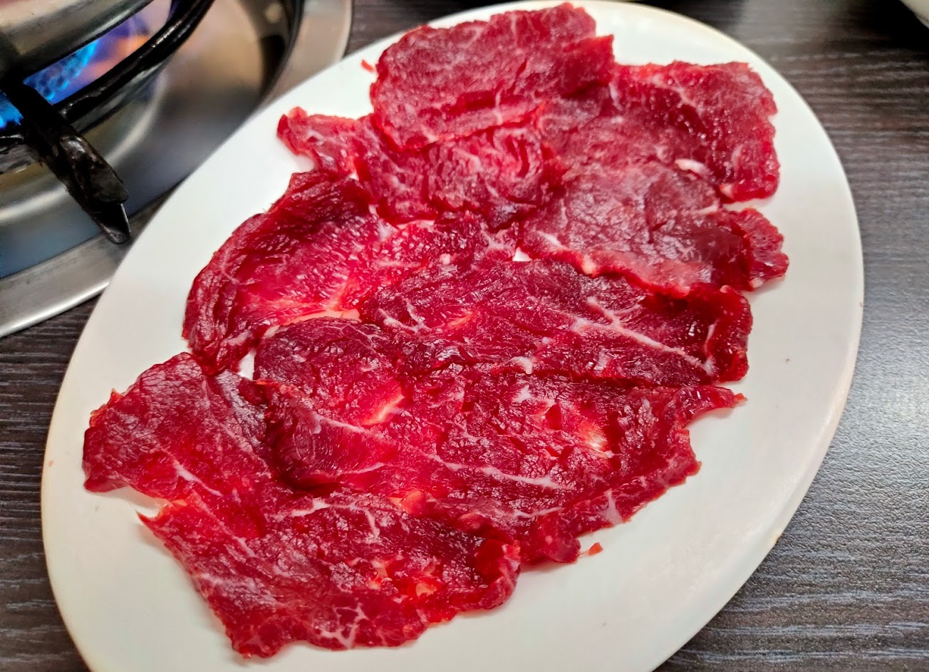 牛肉肉質軟嫩,放進鍋裡涮個10秒左右,呈現淡粉紅色是最剛好的熟度