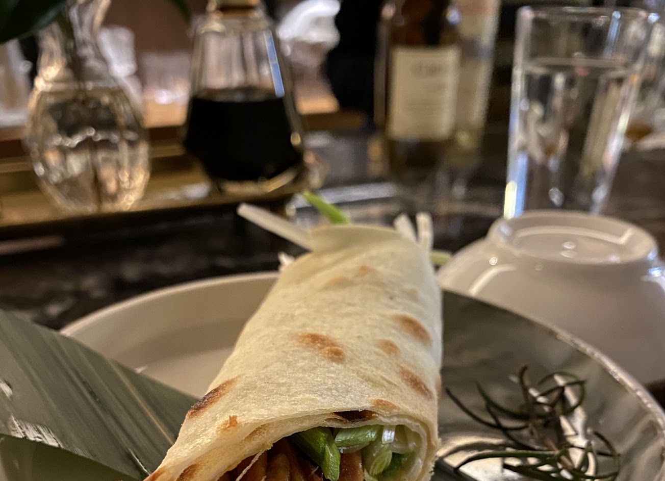 夢幻旅程,從酸甜辣的小菜開始,接著燻鴨捲餅搭配蒜苗味道恰到好處,中間調酒木(wood)來啦,每道料理各有千秋,我非常喜歡喝完後留在喉嚨的芬香感與回甘茲味。