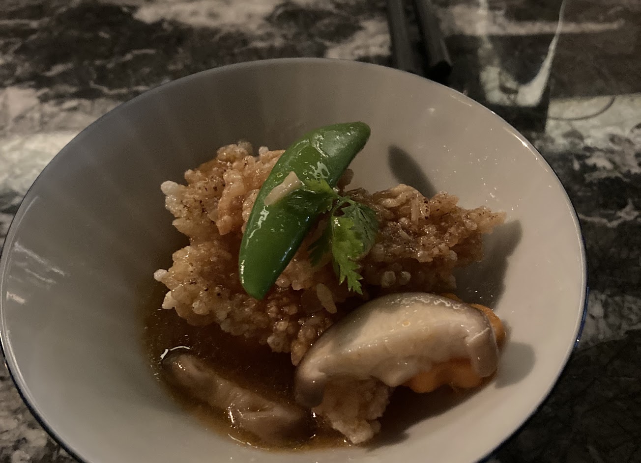 吧台店員非常非常親切、服務很好、十分健談但不過度;環境氣氛很好,有舒適的香氛(除了廁所門有一點太重,可以醒酒用?)因為是第一次看到中式湯包與餐酒結合,期待也蠻高的,但品嚐後感覺落差有一點大:
