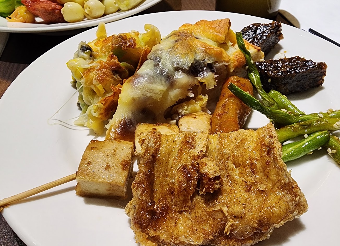 餐點部分,沙拉、素生魚片、蒸餃、醬燒油條,對我來說印象較深刻,是會想重複夾取的種類。