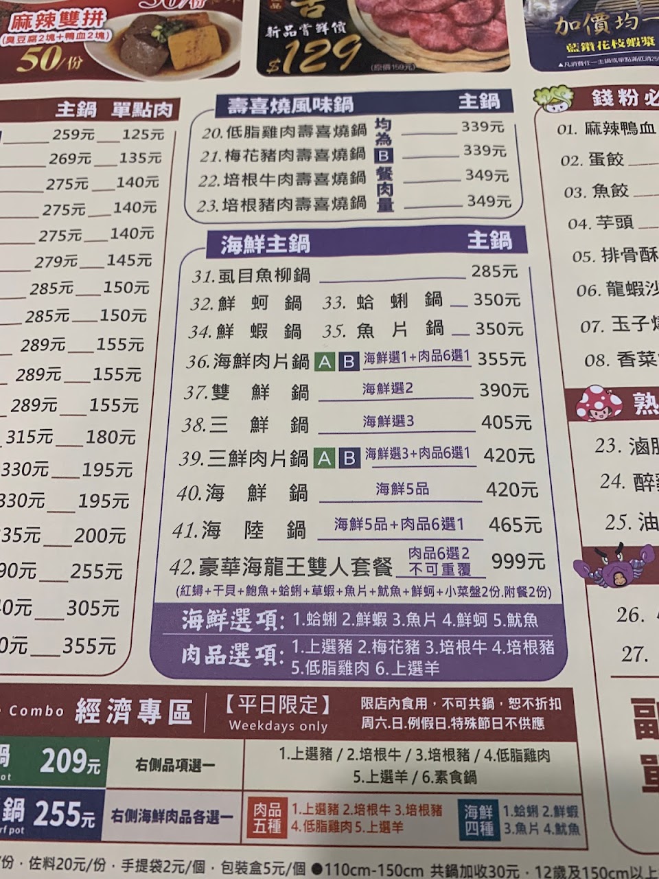 ①大部分的鍋有提供AB餐兩種菜盤可選擇,A餐是「大菜盤」搭配4.5oz的肉盤,B餐是「小菜盤」搭配7.5oxz的肉盤。照片裡是B餐,肉盤份量蠻多的,菜盤也夠吃。