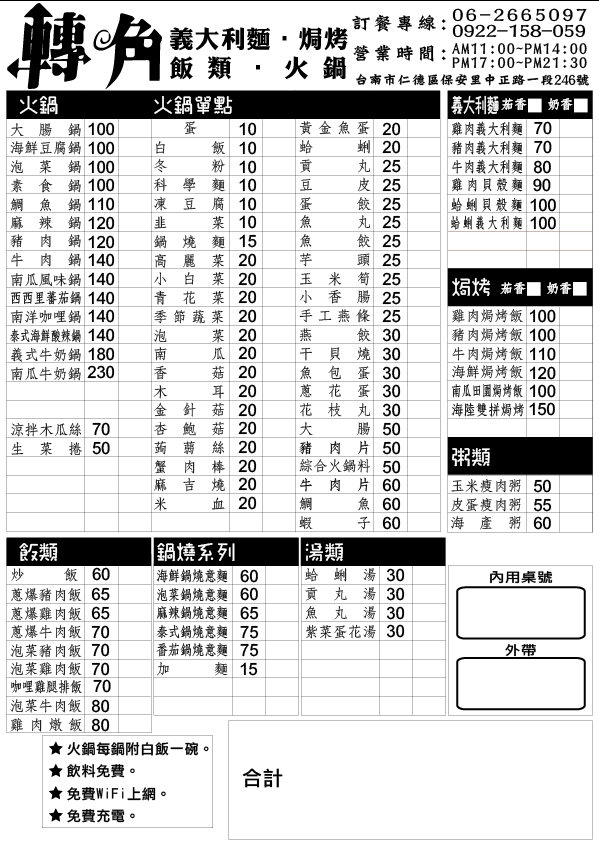 2024最新在地推薦餐廳的菜單_轉角.義大利麵的菜單、圖片