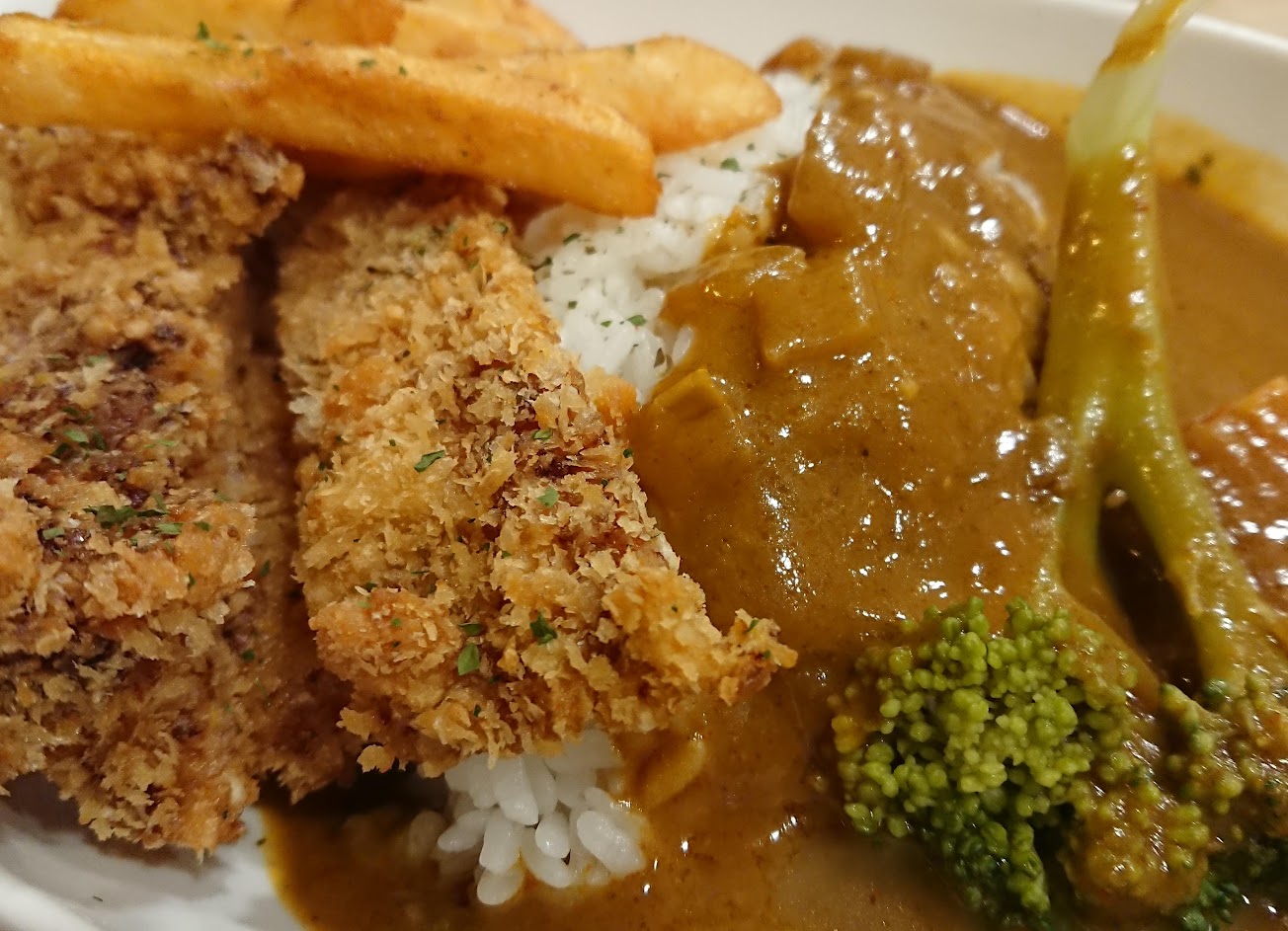 炸物水準直逼日式料理級.咖哩醬色香味標準只是醬料稍鹹.滑蛋軟嫩“讚”.飯太硬.脆薯好吃…