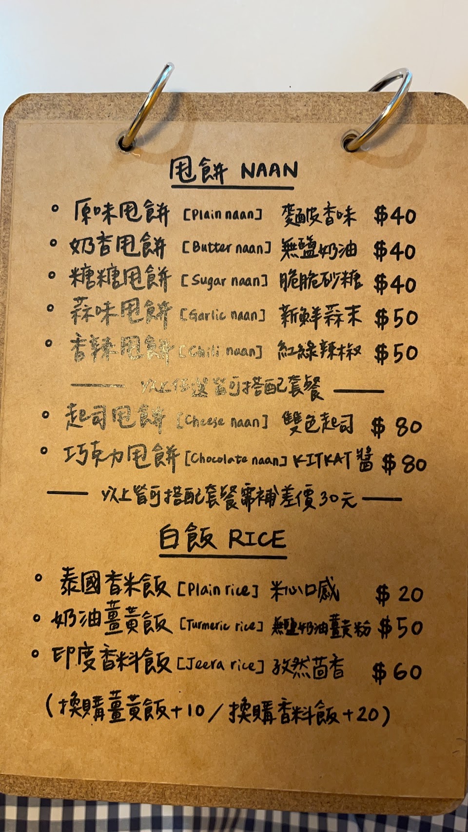 厲害的是他的白米飯好吃,加價的薑黃飯也好吃,甩餅試過蒜味甩餅、奶香甩餅、起司甩餅、糖糖甩餅都很香很好吃。