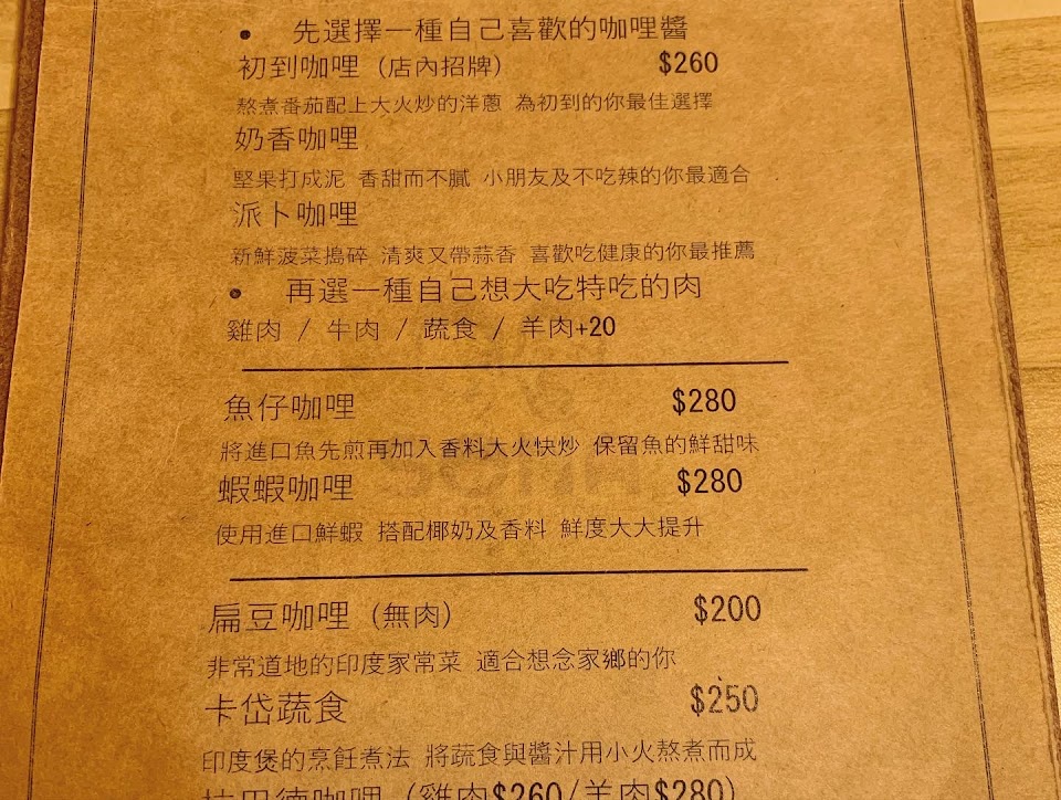 2024最新在地推薦餐廳的菜單_初到咖哩|SONA curryplace|的菜單、圖片