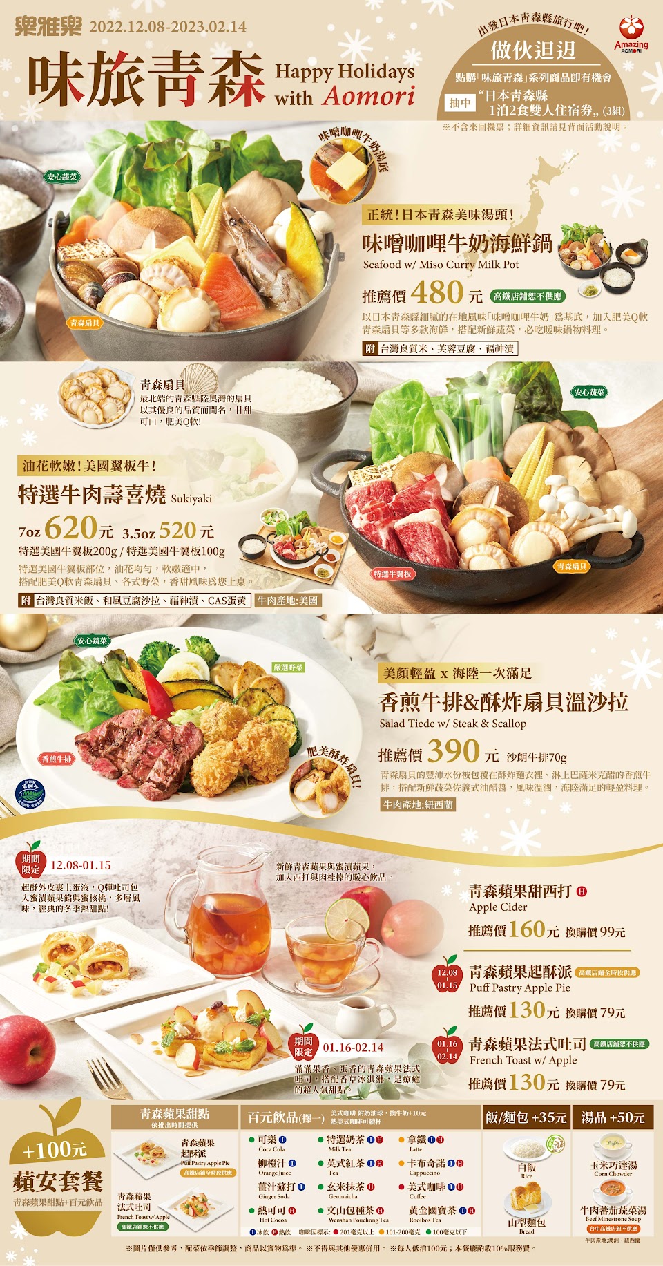 樂雅樂乾淨,座位多,服務親切,提供早餐,午餐,晚餐,有牛排,咖哩飯,意大利麵,日式火鍋…多元選擇,價位也很合理。