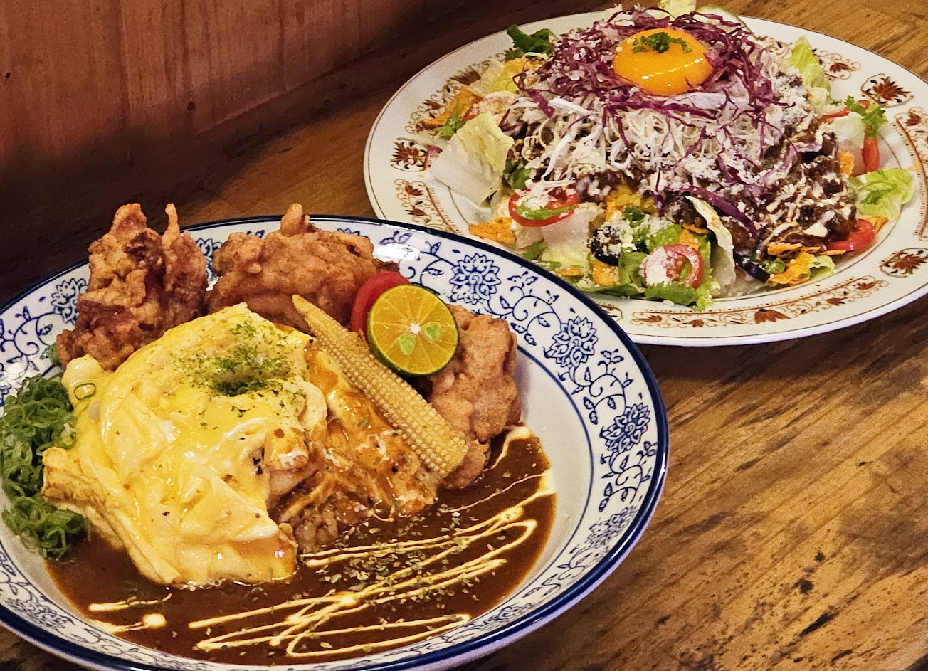 (唐揚雞咖哩蛋包好吃)